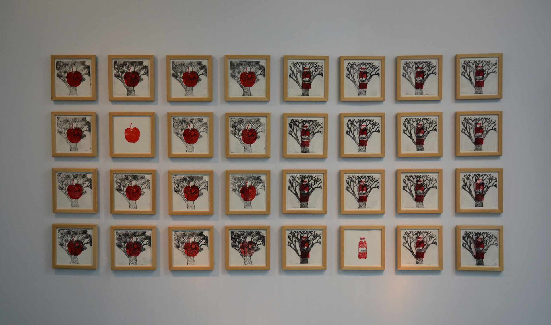 Made in China / Acrylic on canvas, shopping cart, cardboard boxes